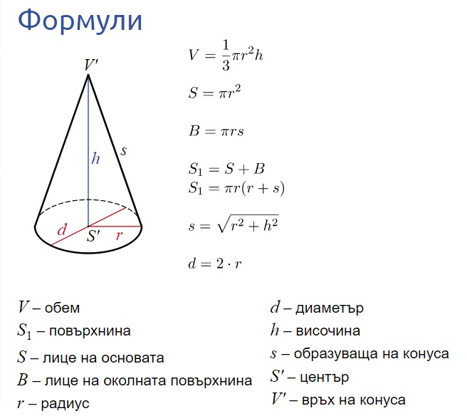Ротационният конус се състои от кръгова основа и околна повърхнина.